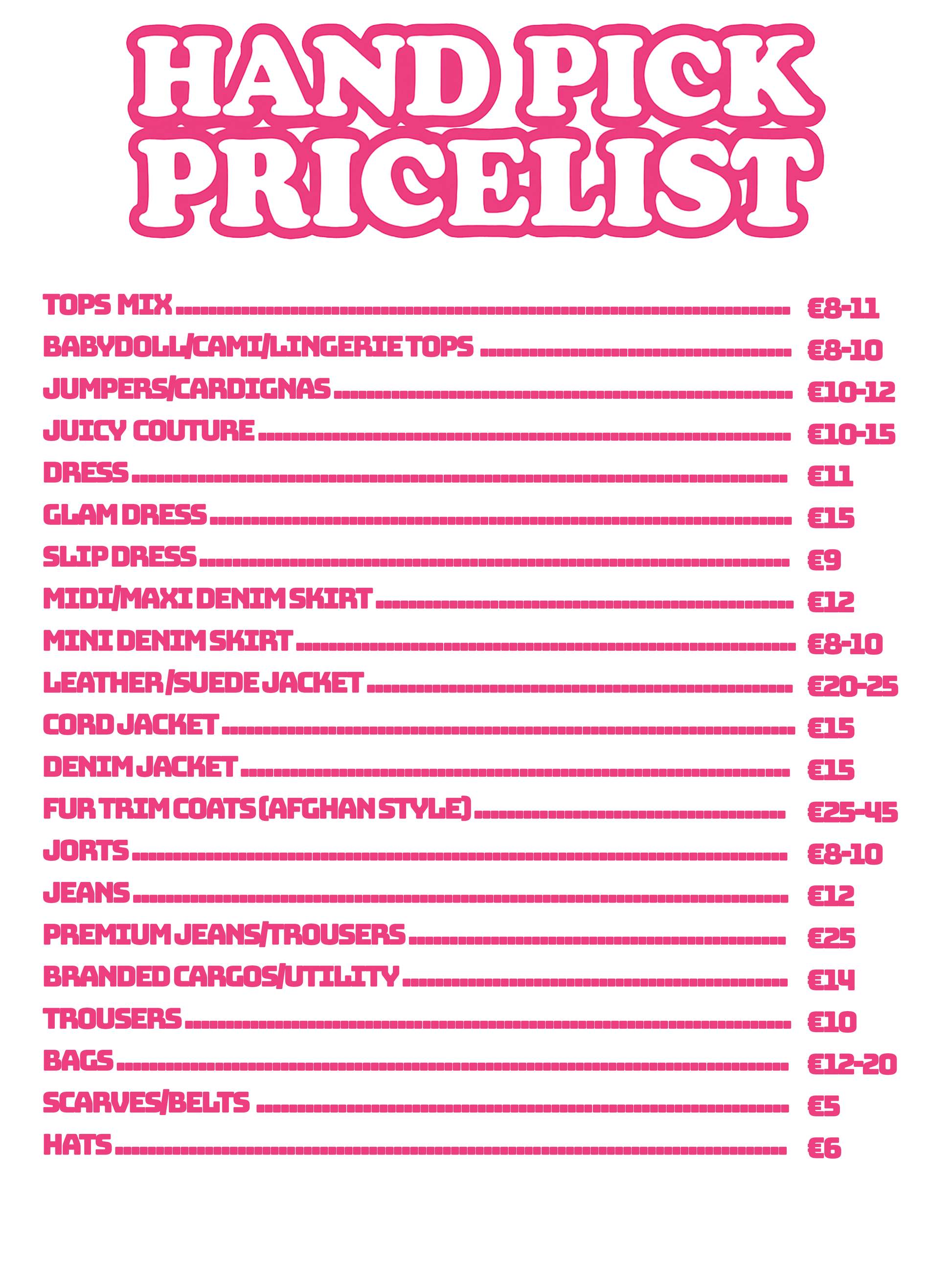 Minimum spend for a handpick is €350. Your deposit will be deducted from the final total at checkout.
